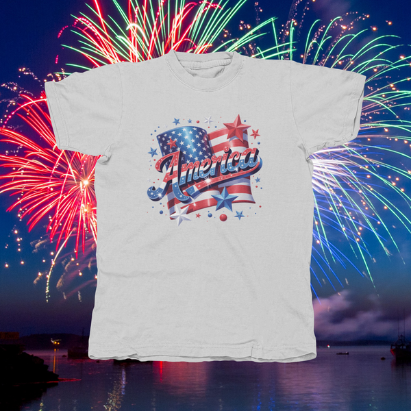 AMERICA WITH FLAG & STARS - front of tee